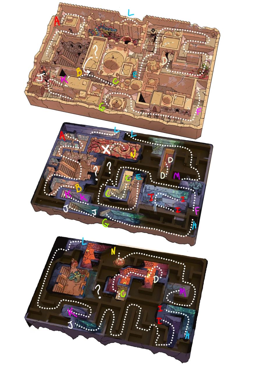 Un circuit à billes pour un jeu labyrinthe d’aventure complexe sur 3 niveaux.