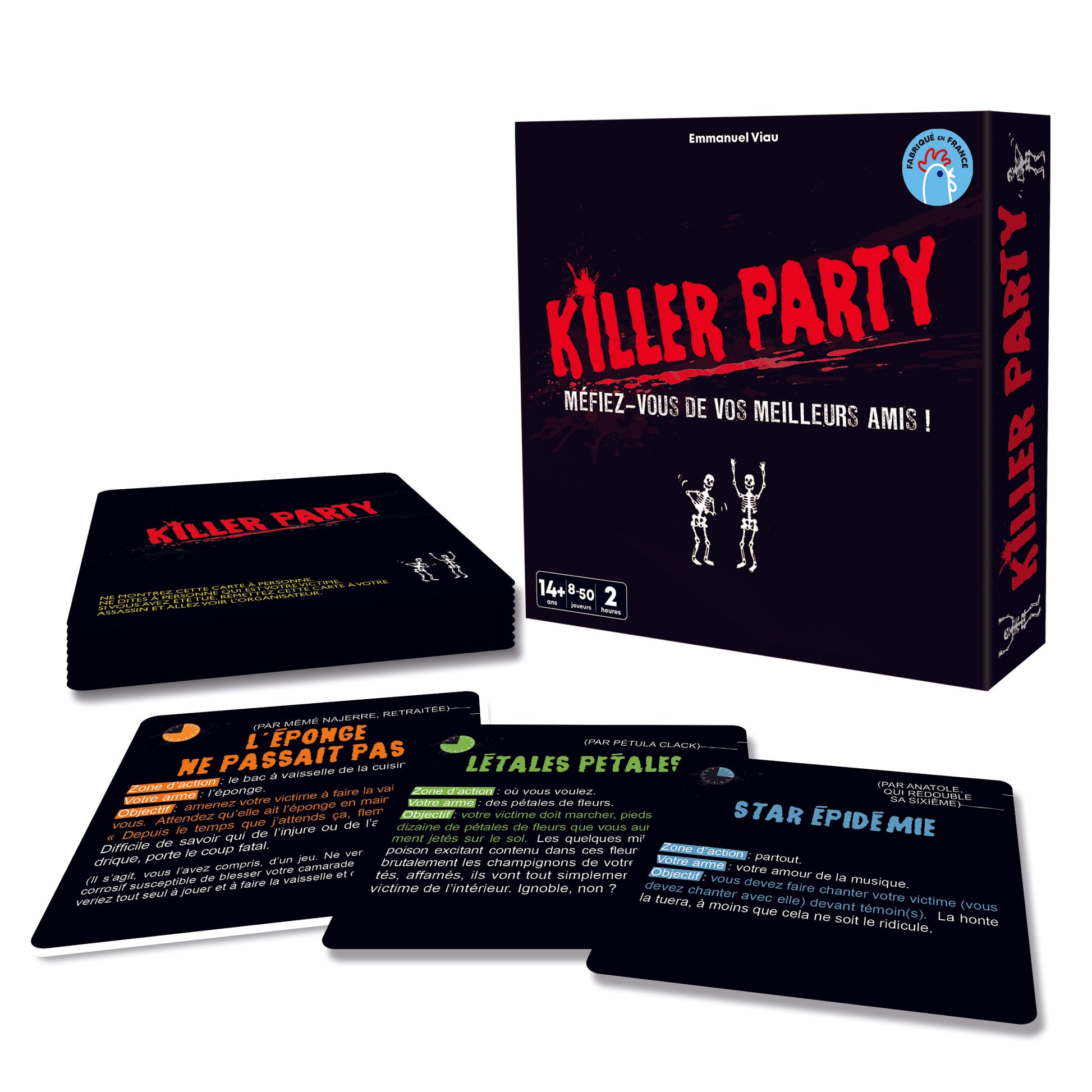Killer Party est un jeu d'ambiance et de défis qui prends toute son ampleur lors de soirées ou d'événements entre amis car il se joue de 8 à 50 joueurs !