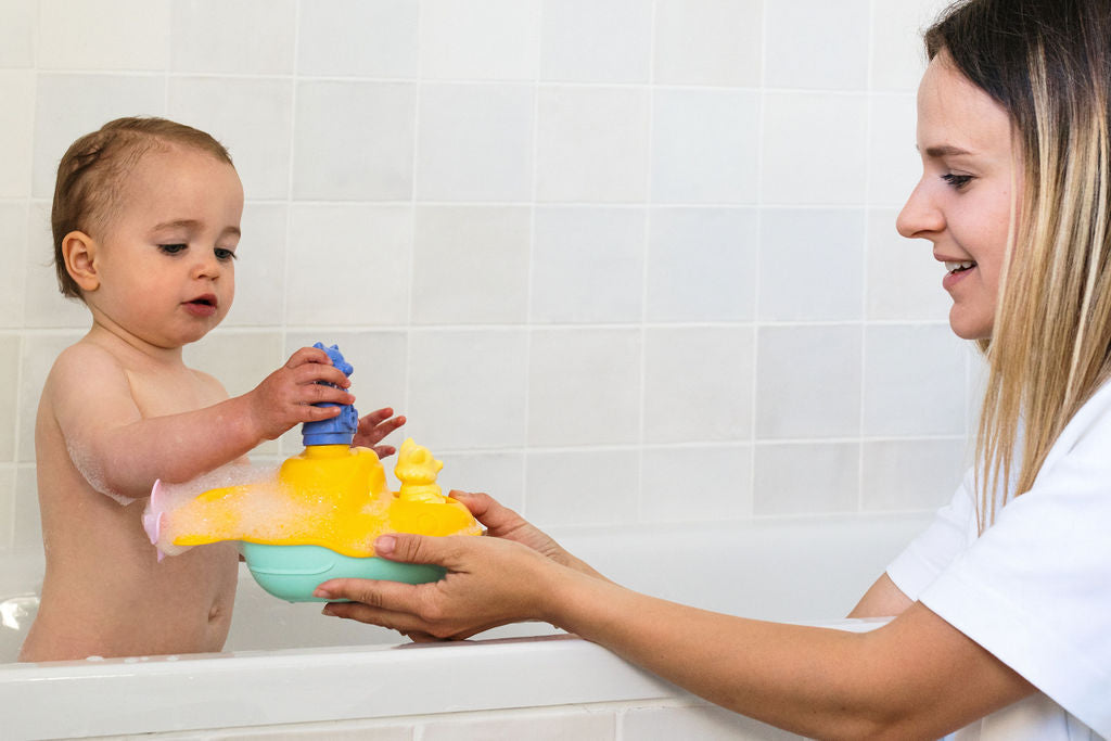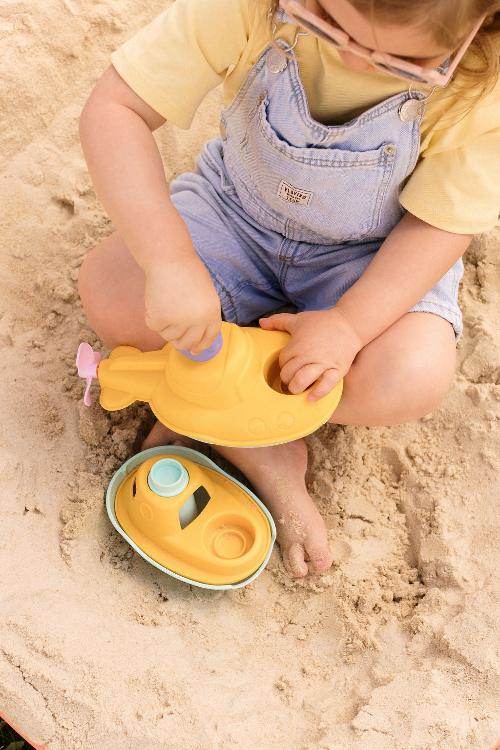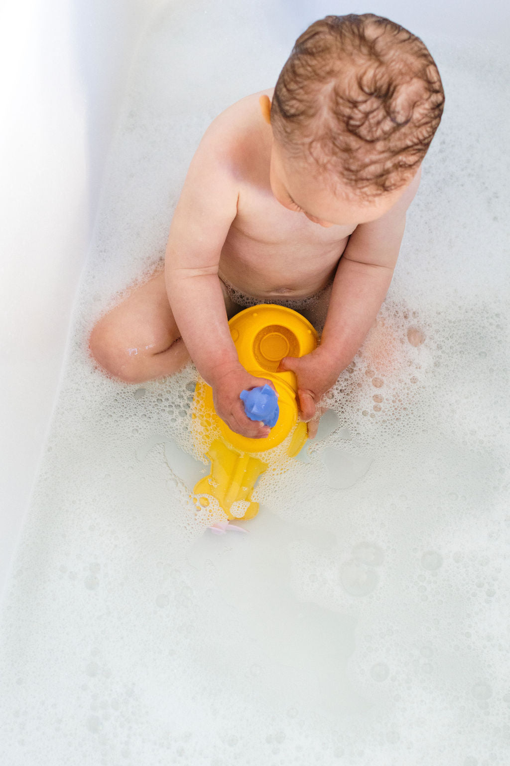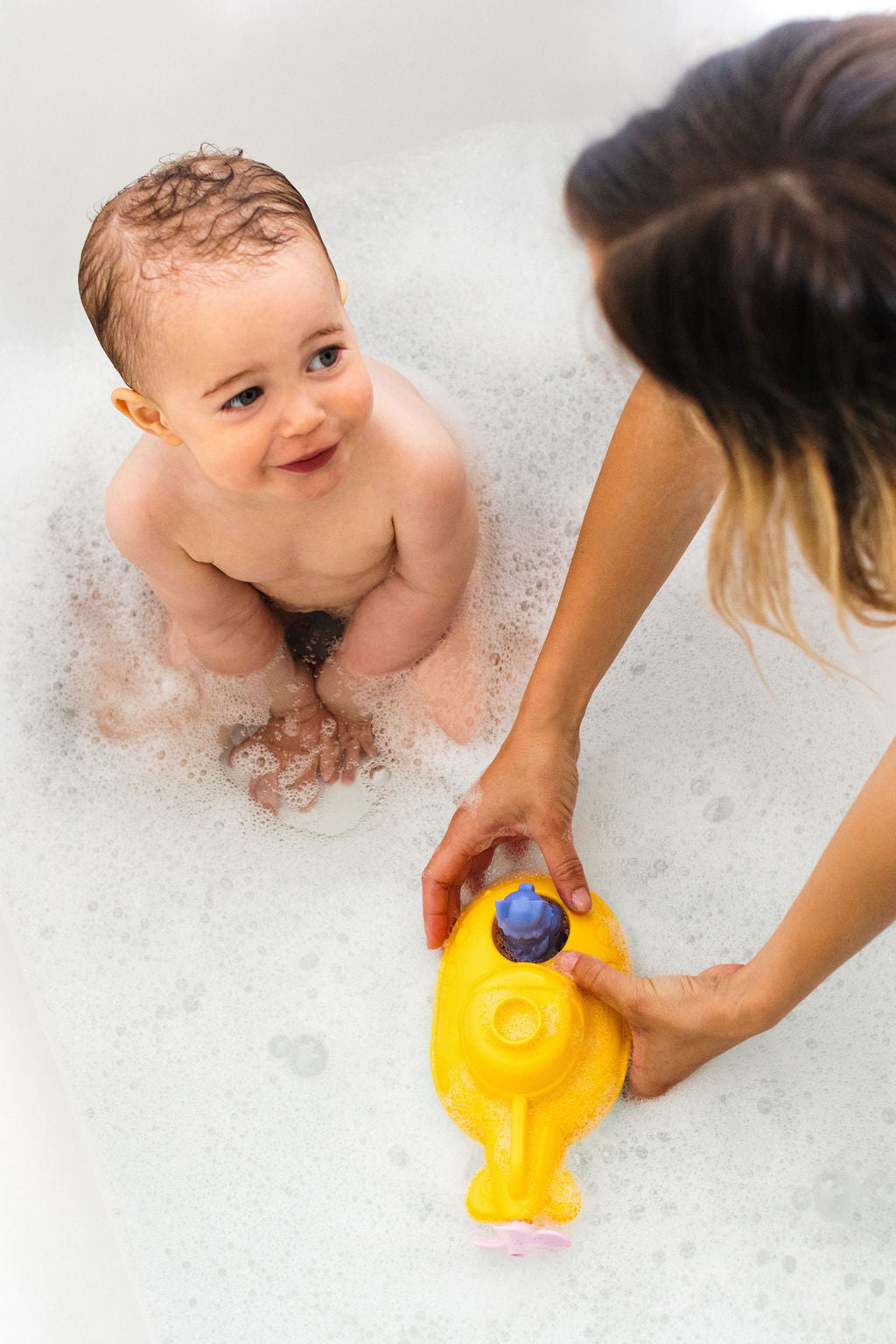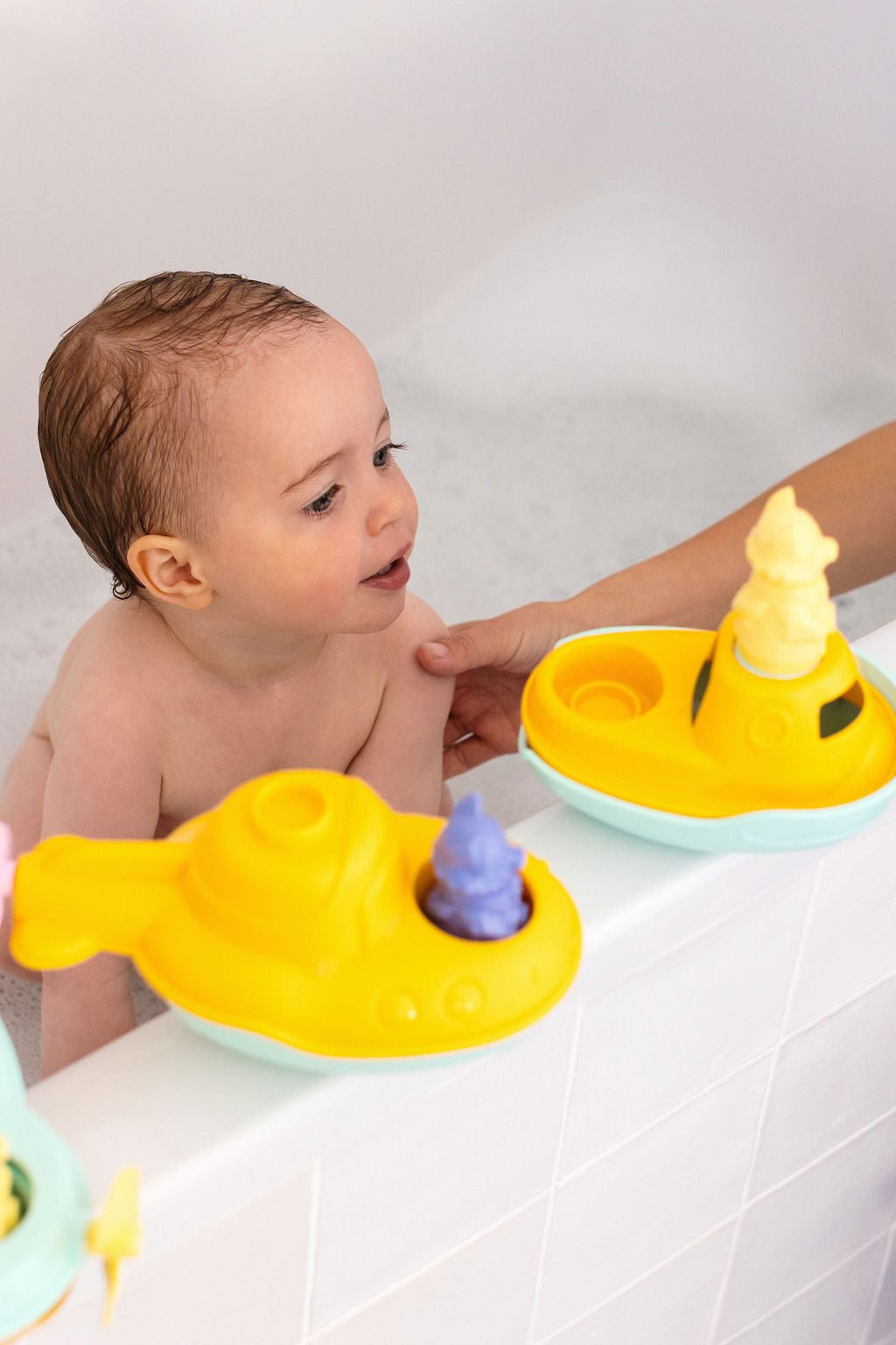 Un sous-marin jaune qui se transforme en bateau pour le plus grand plaisir des enfants ! Un super jouet de bain et d'éveil Made in France, 100% plastique recyclé et recyclable, idéal pour les 2 - 4 ans !